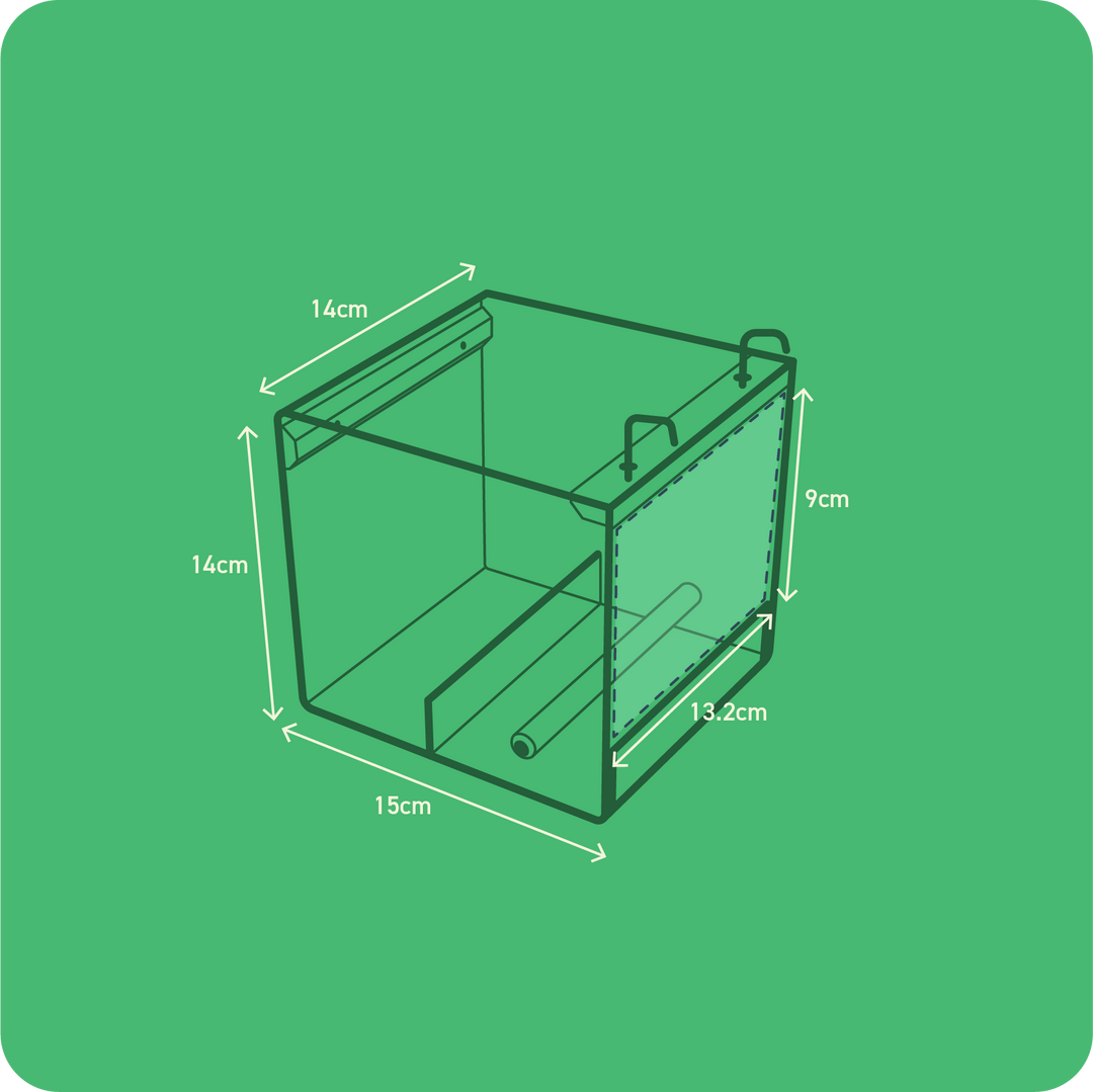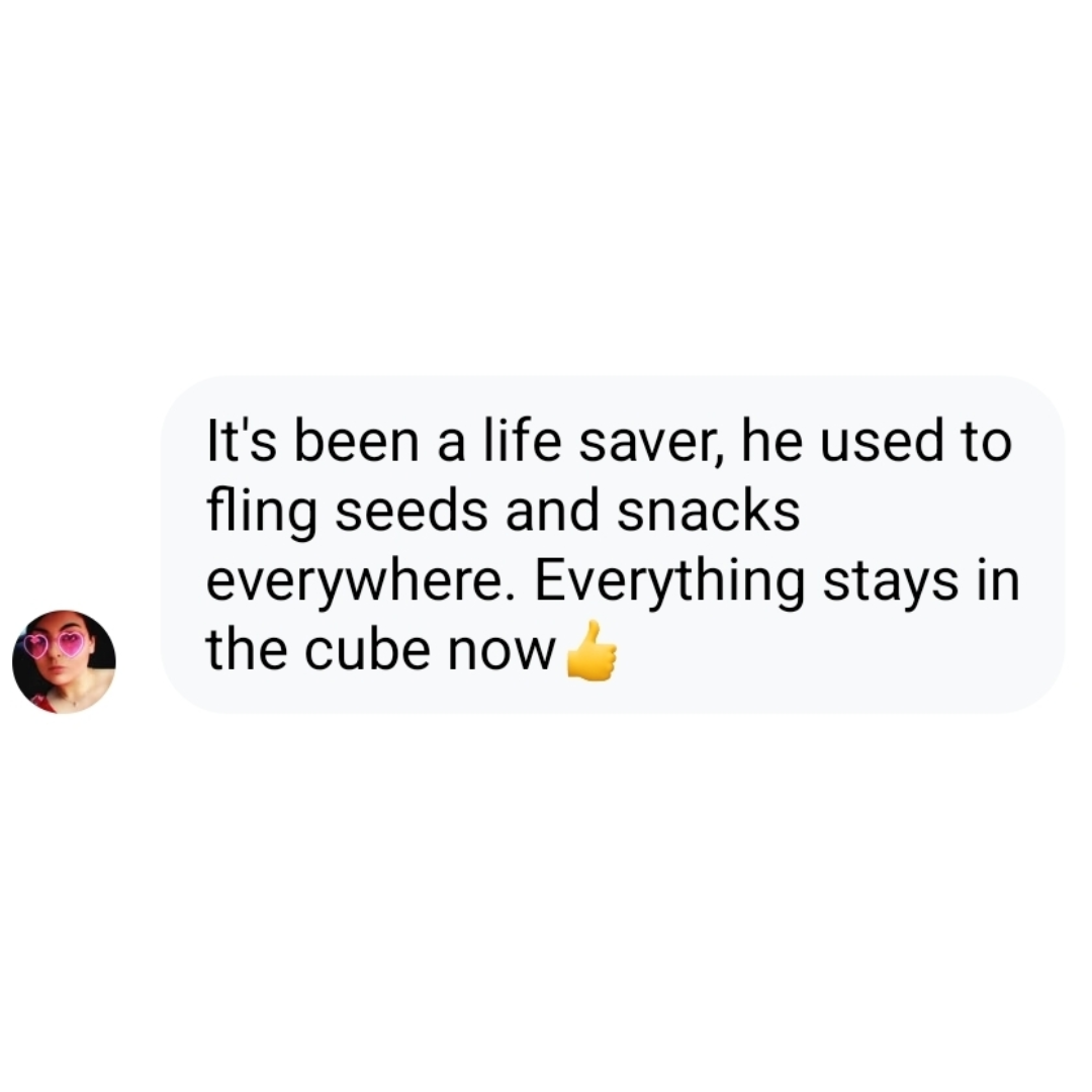 Perfect for smaller birds and compact cages, the Small Seed Cube provides the same mess-reducing benefits as its larger counterpart but in a space-efficient design. If you have finches, canaries, budgies, cockatiels, or other small to medium-sized birds, this feeder is an ideal fit.