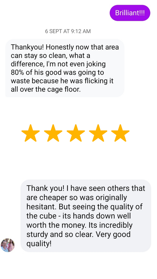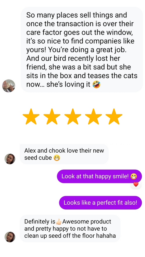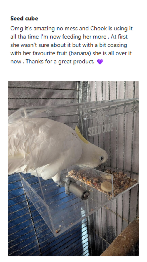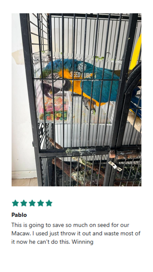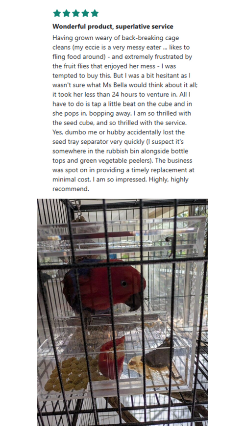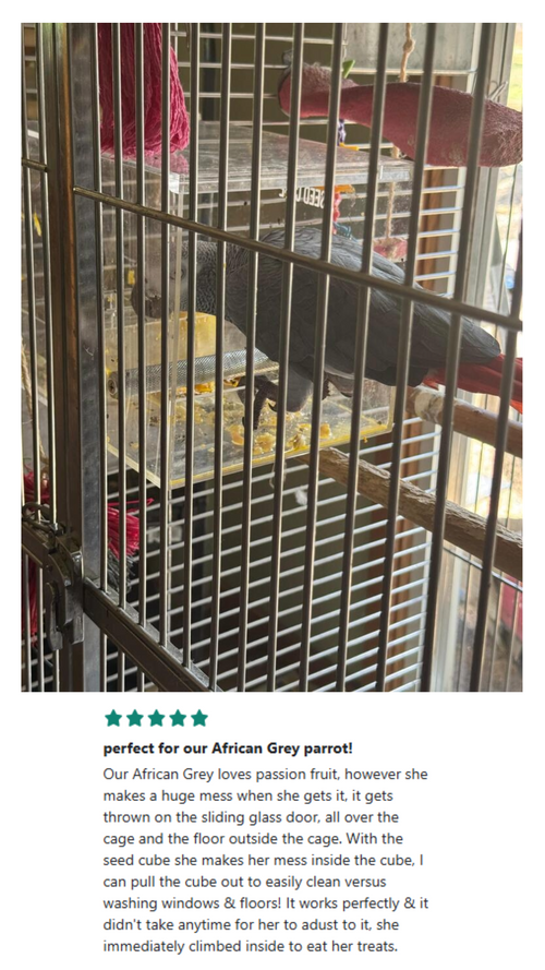 The Seed Cube Bundle pairs our best-selling Large Seed Cube with the custom-fit Easy-Tray – giving you the ultimate mess-reducing feeding setup. While the Seed Cube keeps your bird’s food area contained and calm, the Easy-Tray takes it a step further by catching dropped food and making daily clean-up a breeze. If you want a cleaner cage, less waste, and an easier feeding routine, this bundle has you covered.