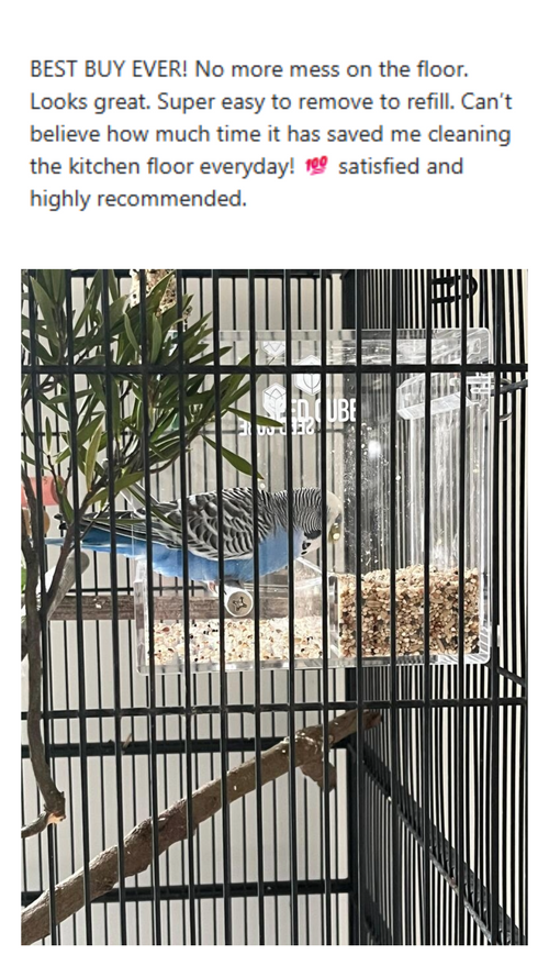 Say goodbye to scattered seeds! Refill from the outside without disturbing your bird, keeping their routine calm while making your life easier.