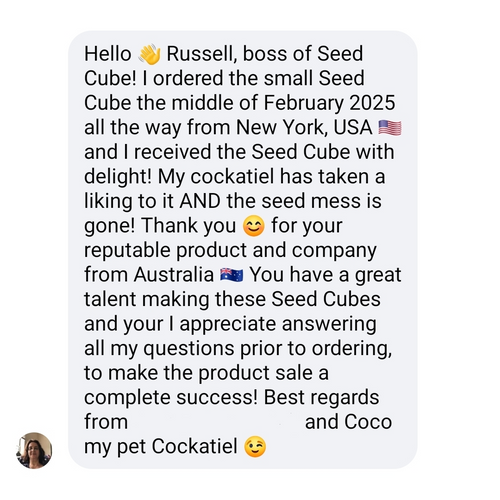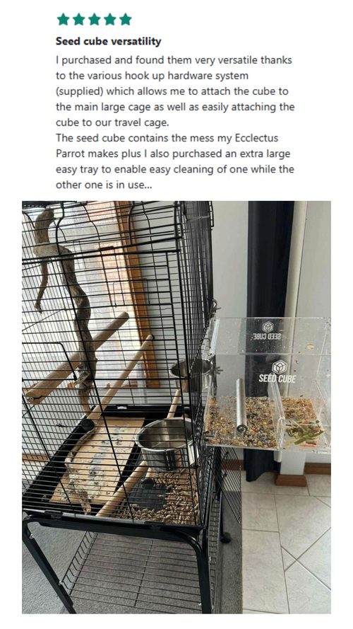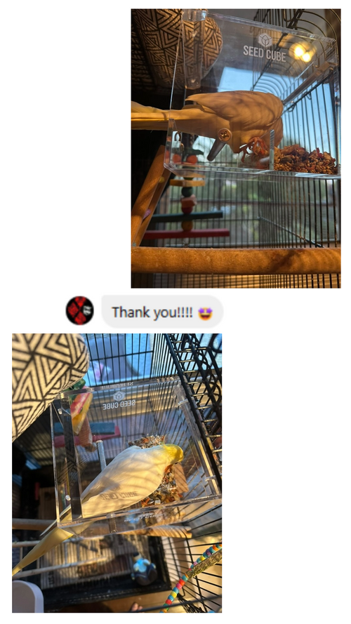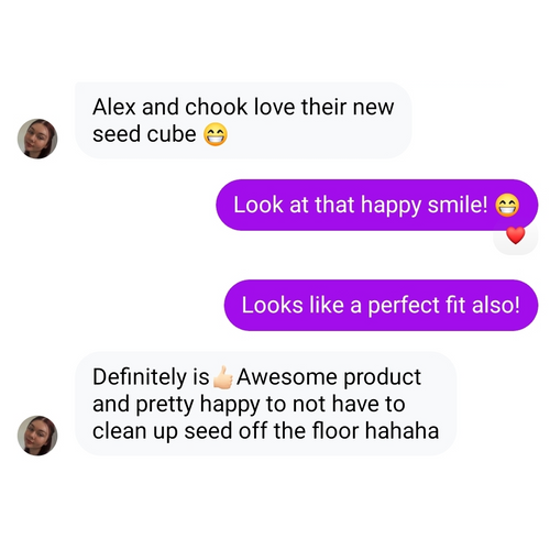 Perfect for smaller birds and compact cages, the Small Seed Cube provides the same mess-reducing benefits as its larger counterpart but in a space-efficient design. If you have finches, canaries, budgies, cockatiels, or other small to medium-sized birds, this feeder is an ideal fit.
